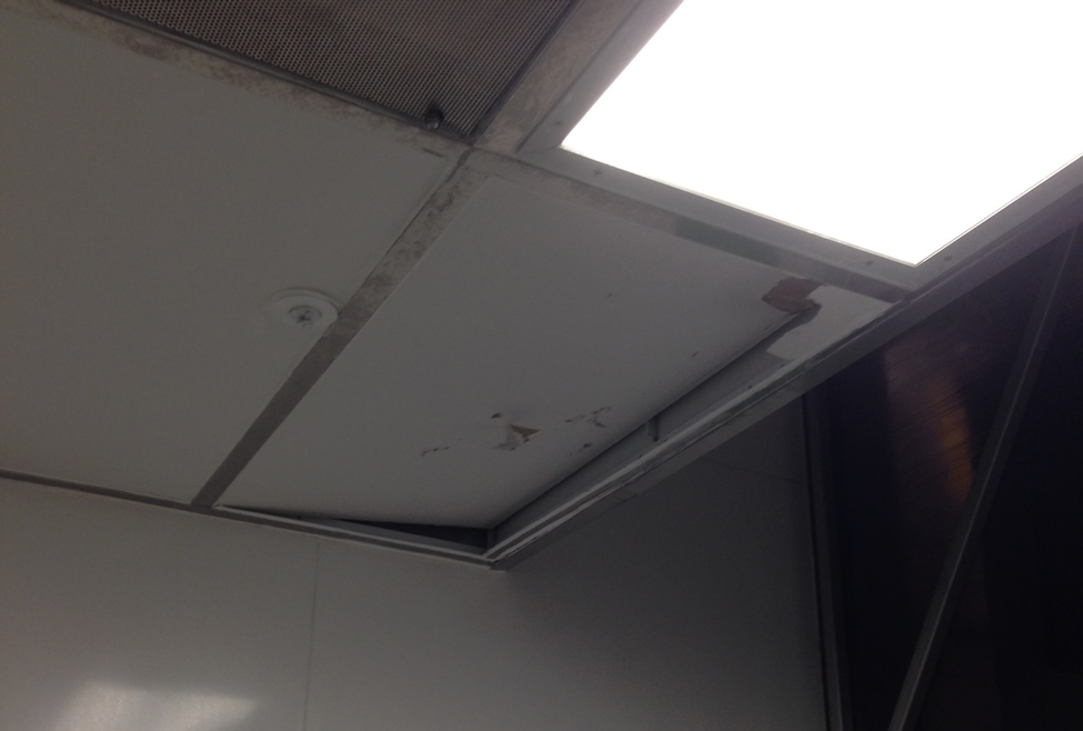 Misaligned ceiling tiles, exposing cleanroom to exterior contaminants