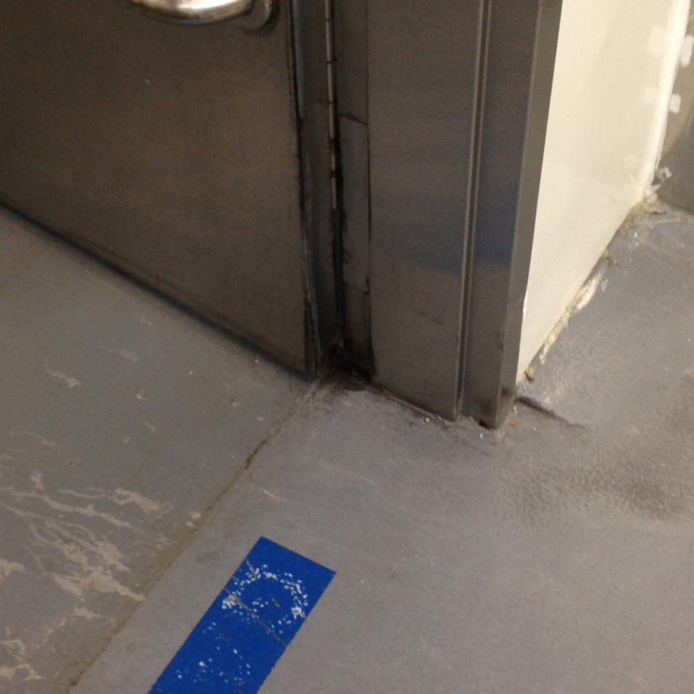 Damaged primary surfaces: gouges and gaps in flooring result in difficult to clean areas.